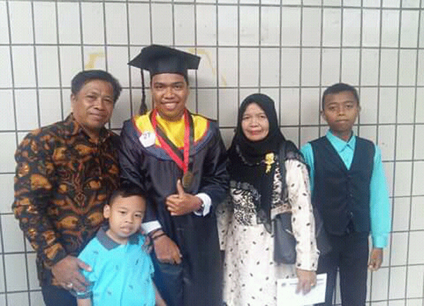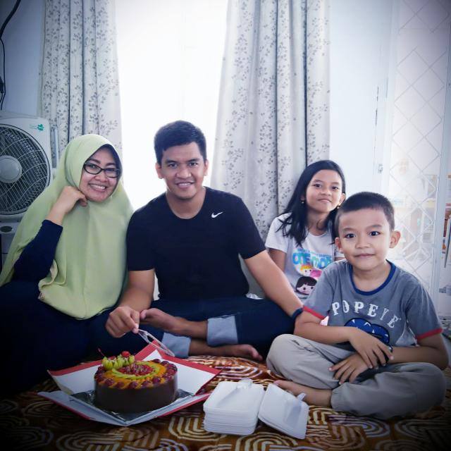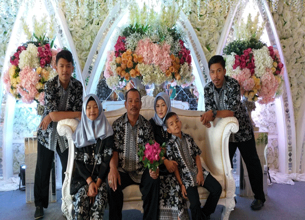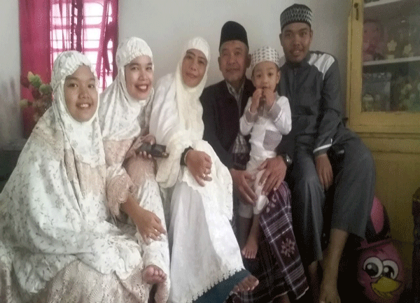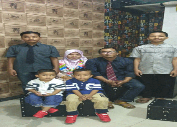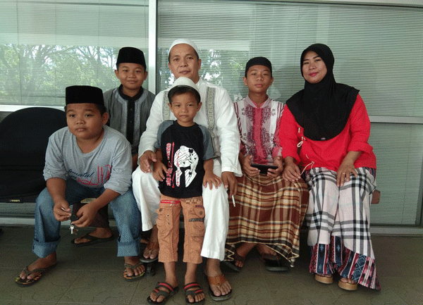 Foto Bersama Mukhlis sekeluarga, nampak dari kanan ke kiri; 1.Mukhlis, 2.Ani, 3.Rehan, 4.Qeis, 5.Ikhlas.