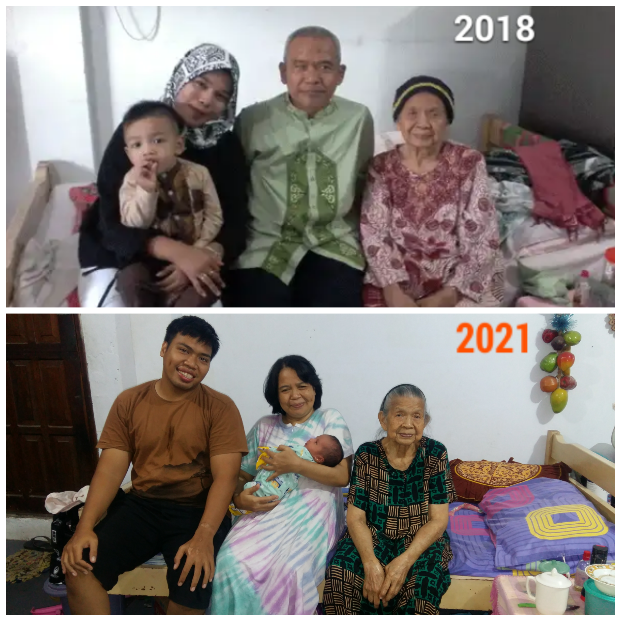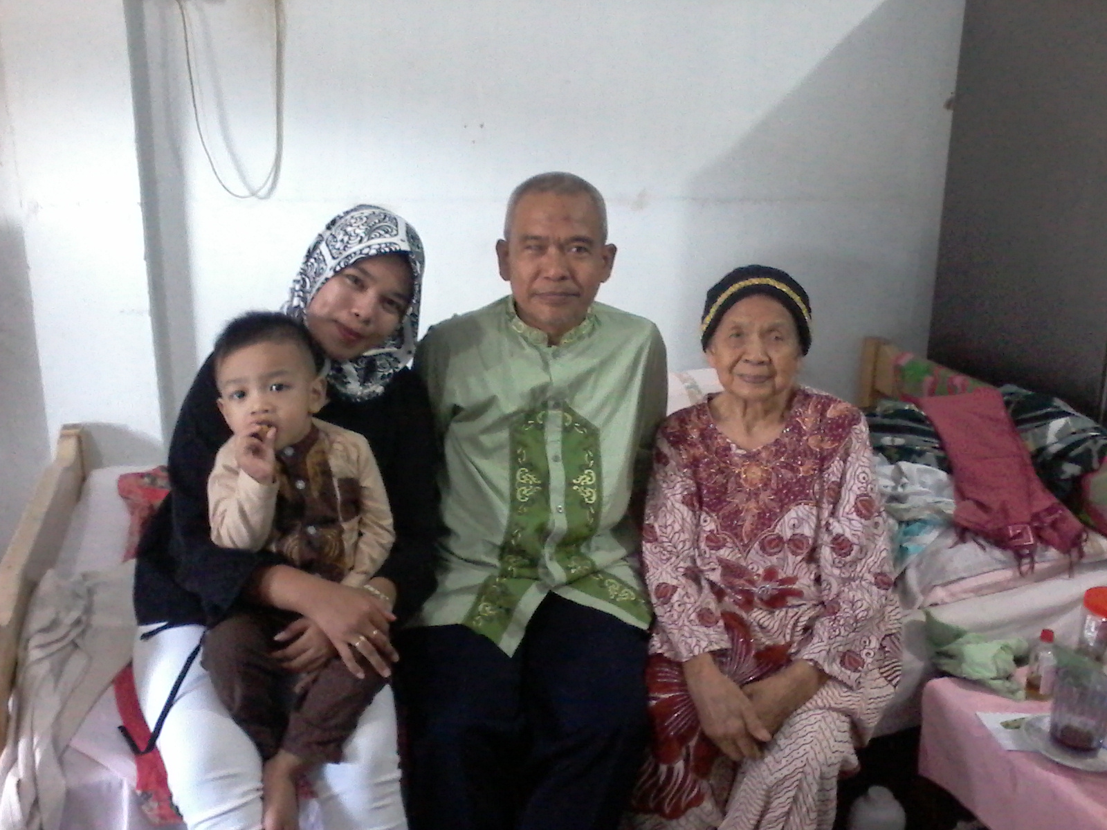 Foto Empat Generasi, tahun 2018, di kediaman Hj.Rustina, BTN Timurama Lamaubeng Parepare, suasana selesai lebaran Idul Fitri. Nampak dari kanan ke kiri; 1.Hj.Hadariah, 2.Ruslang T, 3.Fila Rusari, 4.Andi Rafi (dipangku).