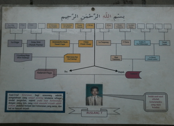 Bagan Silsilah Keluarga Lima Generasi, silsilah keturunan dari Ibu dan Bapak Ruslang T, Empat lapis ke atas.