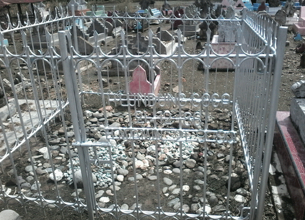 Foto Makam Suami-Isteri Satu Pagar, Hj. Lundung Goga, wafat tgl. 21-12-1986, dan H. M.Amin, wafat tgl. 21-09-1990, di Pekuburan Samallangi, desa Sumpangmango, Kecamatan Pitu Riawa, Kabupaten Sidrap, Sul-Sel.