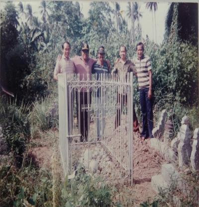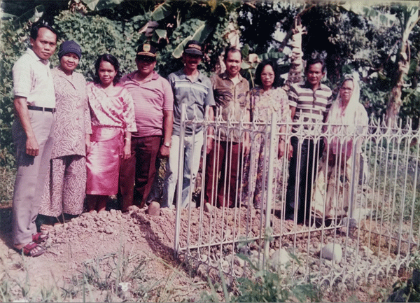 Foto Sembilan Bersaudara di Lokasi Makam Orang Tua, Samallangi, tahun 1990, nampak dari kanan ke kiri; 1. Hadariah, 2. Mustakim, 3. Wasiah, 4. H. Hanafi, 5. Alwi, 6. H. Mustafa, 7. Mukhsana, 8. Musyawarah, 9. Nasir.